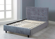 Elevate your bedroom with the contemporary charm of the Alto bed frame. It features a soft, elegant grey upholstered finish that provides a sophisticated touch to any modern space. The standout feature is the cushioned headboard, beautifully detailed with classic pink button tufting that adds a pop of playful yet chic contrast. Built for both style and support, the frame includes a robust wooden slat base to ensure reliable, lasting stability for your mattress.